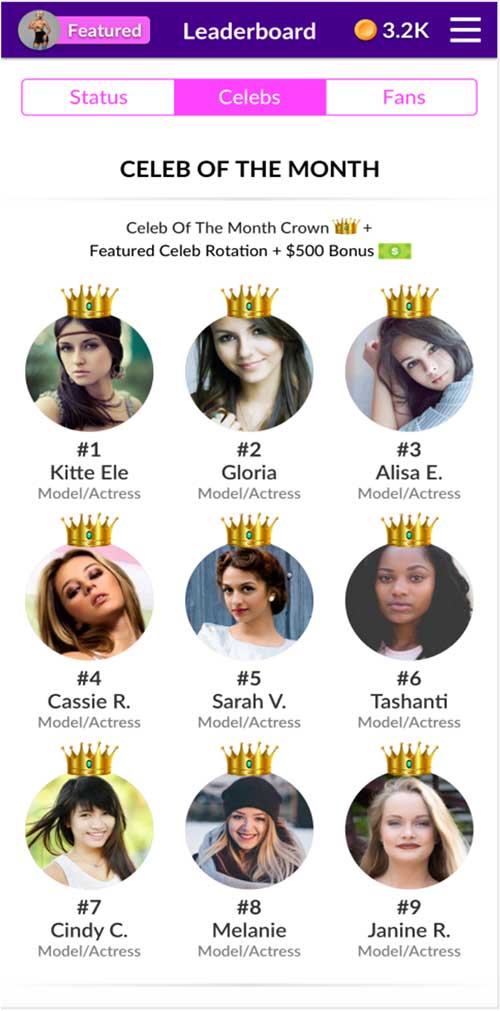 We give away $10,000 and featured placement to the top earning Celebs and Fans each month.